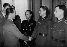 ![]() Fotografiado con la palma de plata de la Falange en la manga izquierda | ||