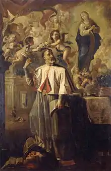 De su paso por Valencia ha de ser un pequeño cobre de alegre colorido conservado en el Colegio del Patriarca, en el que se narra un hecho milagroso de la vida de san Luis Bertrán, diversamente interpretado como la predicción de la muerte de un militar que maltrataba a los indígenas o la interposición de un árbol entre el santo y un atacante.[4] Hacia 1670 y todavía en Valencia, pintó la recientemente descubierta Visión de San Pedro Pascual, centrándose también en esta ocasión en la defensa de la Inmaculada Concepción, sobre la que supuestamente había escrito y predicado el legendario santo.[5]