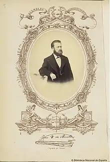 Retrato de José Toribio de Ameller, fotografía de José Suárez, Litografía de Zaragozano. Inscripción: «La Asamblea Constituyente de 1869». Debajo: «(Diputado por Gerona)». Facsímil de la firma: José T. de Ameller. Biblioteca Nacional de España.