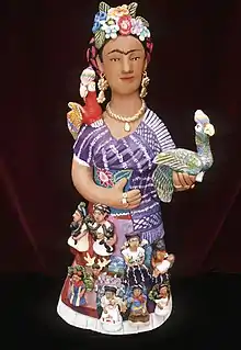 Uno de los temas más populares en las creaciones de Josefina Aguilar han sido sus reinterpretaciones de la figura de la pintora Frida Kahlo. Ella afirma que la primera vez que vio un cuadro de la pintora fue en una librería de la ciudad de Oaxaca y que ésta llamó su atención porque sintió que su rostro y su cabello eran parecidos al de ella.[2] Sin embargo, la filósofa Eli Bartra afirma que probablemente alguien le dio algún libro para pedirle que reprodujera en barro los autorretratos de Kahlo, y esta persona quizás tenía interés en el feminismo, dado que la pintora ya era un ícono importante de éste.[8]