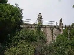 En 1677 el monasterio le encargó las ocho esculturas que debían coronar el nuevo campanario que, finalmente, no se llegó a construir.[1] Tres esculturas que llegaron a hacerse están hoy coronando la cisterna que se encuentra en los jardines del monasterio, en la parte trasera de la basílica.