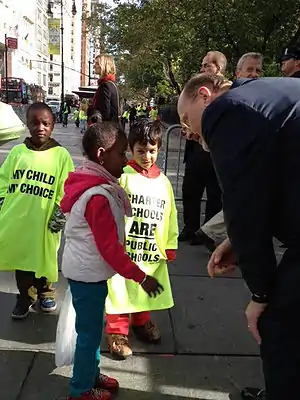 Dar a los padres opciones y flexibilidad al duplicar el número de escuelas chárter públicas de Nueva York, especialmente en los barrios de bajos ingresos.[4] Dar a todos los niños el acceso a Pre-Kindergarten sin aumentar los impuestos, en contraste con el candidato democrático Bill de Blasio.[cita requerida][11]