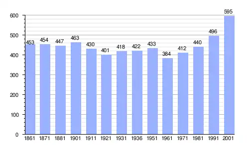 Gráfica de evolución demográfica de Jovençan entre 1861 y 2001 |