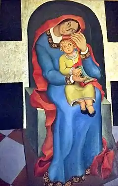 Se conocen también en este aspecto otra serie de obras plasmadas a lo largo de los años 1970, más concretamente en su domicilio estudio de la Avda. Cristóbal Colón n.º 1 (bloque de suboficiales del Ejército del Aire) de la capital pacense, en las que el artista abordó el tema recurrente de la Virgen con el Niño, desprovistos casi por completo de elementos de índole sobrenatural (adscribible a la iconografía mariana neofigurativa de la segunda mitad del siglo xx), donde se aprecian claramente «las características cabezas inclinadas» de las Vírgenes/madres,[15] sentadas salvo escasas excepciones sobre una simple caja de madera, de las que se destacan las siguientes: