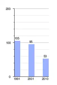 Gráfica de evolución demográfica de Joyango entre 1991 y 2010 |