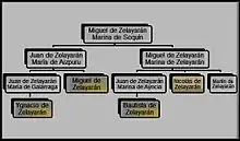 Bisabuelo de Sebastián de Segurola Bisabuelo de Francisco de Segurola tatarabuelo de Saturnino Segurola tatarabuelo de Gerónimo Zelarayán Cuarto abuelo de José Ballivián Cuarto abuelo de Celedonio Gutiérrez Cuarto abuelo de Matías Ramos Mejía | |