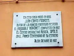La casa natalicia del compositor alcoyano se encuentra en el edificio en la calle El Camí 1, en el centro histórico de Alcoy. Es un edificio de estilo modernista obra del arquitecto Timoteo Briet Montaud. En la planta baja se colocó en 1982 una placa conmemorativa que recuerda el nacimiento en 1856 del compositor.