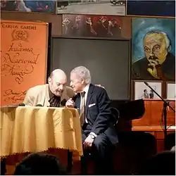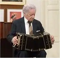 ![]() Juan Carlos Caviello en 2013, tocando en la Academia Nacional del Tango con el bandoneón de Troilo. | ||