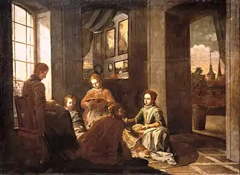 Otra serie, con destino desconocido, dedicó a la vida de santa Teresa de Jesús, de la que se conocen cuatro lienzos, en la actualidad dispersos tras pasar por el Museo de la Trinidad. El más interesante de ellos, la Educación de santa Teresa (Museo del Prado), recreación del estrado femenino en un hogar burgués, tratado a la manera de la pintura holandesa de interiores, evidencia el conocimiento de la obra de Velázquez adquirido en la restauración de las pinturas del Alcázar, por lo que ha de fecharse hacia 1735.