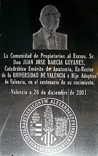 Juan José Barcia Goyanes (Santiago de Compostela, 26 de diciembre de 1901 - Valencia, España, 13 de julio de 2003) fue un médico anatomista, pionero de la Neurología, de la Psiquiatría y de la Neurocirugía en España, Decano y Rector en Valencia, escritor y humanista español.[2] Licenciado en Medicina en la Universidad de Santiago de Compostela en 1922, se doctoró en 1925. Es miembro de la quinta generación de médicos, que se han seguido prolongando en el tiempo, la mayoría de ellos profesores de Universidad y dedicados al cultivo de las ciencias neurológicas.Y la cual ha seguido aumentando con dos más.