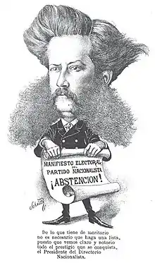 ![]() Caricatura de Juan José de Herrera por Charles Schütz publicada en Caras y Caretas en 1890. | ||