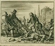 - Van Braght, Thieleman J. (1660) "How Mark, the Holy Evangelist, Dragged to the Stake at Alexandria, Died on the Way, A.D. 64"; The Martyrs Mirror: 77-78. Herald Press, 1977