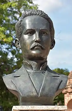 ![]() Busto de Juan Nepomuceno Ravelo en el Parque Independencia de Santo Domingo | ||