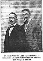 En noviembre de 1909 en Málaga, como presidente de la Junta permanente de festejos, organizó La Semana de la Aviación en la ciudad.[14] También en 1910 fue miembro del Comité Organizador de las Fiestas de Aviación en Málaga.[15][16] El domingo 25 de septiembre de 1910 se recoge en las revistas La Unión Ilustrada y Diana, el homenaje que le fue concedido por su labor como presidente: «Don Juan Ponce de León, presidente del Comité de Aviación que ha sido obsequiado con un banquete».[17]