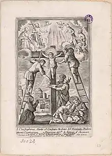En cuanto a estampas sueltas de devoción se encuentran, junto a las advocaciones locales, como son las distintas versiones de la Virgen del Rosario venerada en el convento de Santa Cruz la Real de Granada, una de ellas, firmada en 1751, con la imagen de la Virgen en un rompimiento de gloria ante el papa Pío V, ángeles trompeteros y una representación de la batalla de Lepanto,[5] los santos de reciente canonización, como la estampa de san Félix de Cantalicio, canonizado en 1712, y las que prometen indulgencias, como la estampa del Santo Niño de La Guardia, en impresión aparte de la ilustración incorporada al libro de fray Antonio de Guzmán, Historia del inocente trinitario el Santo Niño de la Guardia, natural de la ciudad de Toledo, Toledo, 1720.