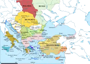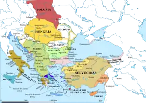El ímpetu con el que los turcos avanzaban por los Balcanes parecía incontenible: después de la caída de Tesalónica fue el reino de Serbia. Aunque la batalla de Kosovo (1389) se saldó con la muerte de los dos soberanos, Murad I y el príncipe serbio Lázaro, el resultado fue claramente favorable a los turcos que redujeron el Estado serbio a la situación de vasallo turco.