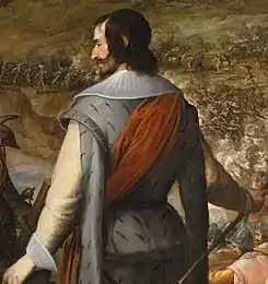 ![]() Juan de Amézqueta, por Eugenio Cajés. Sección de la obra: «La recuperación de la isla de Puerto Rico por el gobernador de la isla, Juan de Haro», 1636, Museo del Prado. | ||