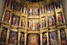 El retablo mayor de la iglesia de los P. P. Dominicos es en estilo medio, digno de consideración por sus baxos relieves y cuerpecitos de arquitectura. No es poco que no haya tenido mal paradero, como otros infinitos de esta clase; y del que estuvo amenazado, para poner en su lugar una mamarrachada, como es la arquitectura de los otros retablos.Ponz, Antonio (1792): Viaje fuera de España, tomo II, Madrid, p. 340.