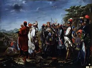 Desde Orán envió en 1760 al concurso de primera clase de pintura de la Real Academia de Bellas Artes de San Fernando, conforme a las bases del premio, el cuadro El rey Fernando III el Santo recibe en Sierra Morena a los embajadores de Mahomad, rey de Baeza,[7] conservado en la misma institución para la que se pintó. En el reverso el pintor se autorretrató con una inscripción latina alrededor del busto, firmado y fechado el 22 de mayo de 1760, en la cárcel de la ciudad de Orán: