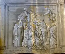La iglesia de la Santa Cruz de Garcillán conserva once sargas, siete con historias de la Pasión y cuatro con los evangelistas, procedentes del convento del Corpus Christi de Segovia, que en julio de 1587 contrató con el pintor la hechura de quince paños con destino al monumento de Jueves Santo por valor de ciento veinte ducados, que podían llegar a ciento treinta si la abadesa del convento daba su conformidad al trabajo hecho. En mediocre estado de conservación y pintadas en grisalla, con gruesos contornos, solo las anima la utilización de un color amarillento en cabellos y barbas conforme a lo establecido en el contrato que estipulaba que rostros, manos y pies fuesen encarnados y lo demás en blanco y negro.[8][9]