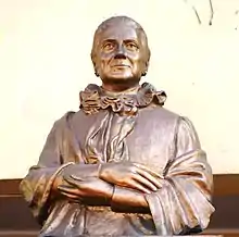 El busto de la dama fue fundido en la Escuela de Artes y Oficios en 1922, de un modelo artísticamente en bronce, pintado de negro, con 100 centímetros de alto, 78 de ancho y 99 de fondo. El busto la retrata de medio cuerpo y posición frontal, con los brazos cruzados sobre el abdomen, viste blusa con encaje y bordados, cuello con bobos, y manto sobre los hombros, lleva el cabello recogido en un moño.