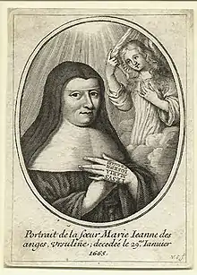 En una ocasión, Juana manifestó síntomas de un embarazo psicológico; esto y las posesiones demoníacas de Loudun han dado mucho que hablar a través de los años. Se dice que en 1635, Juana fue marcada por una cruz en su frente que sangró sin parar por tres semanas. Varios historiadores han llegado a la conclusión de que estas manifestaciones fueron un resultado de histeria en el caso de Juana, y de histeria colectiva en el caso de las otras monjas.[2][3]
