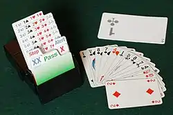 La categoría de juegos de bazas incluye algunos de los juegos más populares jugados como Bridge, Picas, Corazones, Rook, Tute, Dame de Pic, Belote, Skat, Euchre y Pináculo.[29]