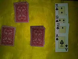 En algunos juegos no se distribuyen todas las cartas a todos los jugadores y se utiliza por esto un «depósito». A este depósito se le conoce por varios nombres en varios países dependiendo del juego; montón o reserva[20] en España, kitty[21] (gatito, en inglés) en los países angloparlantes o nest (nido, en inglés), chien[21][22] (perro, en francés)[7] en los países francófonos o talon (montón, en francés) son variantes muy comunes que se le da al montón en varios juegos.