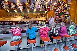 Un juego de feria es un juego de azar o habilidad que se puede ver en una feria, una fiesta, un parque de atracciones o un evento de caridad. Los juegos de feria generalmente se operan sobre una base de "pago por juego". La mayoría de los juegos ofrecen un pequeño premio al ganador. Los premios pueden incluir artículos como peluches, juguetes o carteles. Se fomenta el juego continuo ya que se pueden canjear varios premios pequeños por un premio mayor. Los juegos multijugador pueden cambiar el tamaño del premio con el número de jugadores. En un juego más difícil se puede otorgar un gran premio a cualquier ganador.