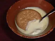 Unas gatellas con natillas. En el juego la leche viene de otro lado.