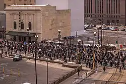 ![]() Manifestantes el día del juicio de Derek Chauvin. | ||