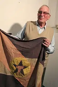 ![]() Fotografía del año 2011 de Julio Marenales sosteniento una bandera del MLN-T. | ||