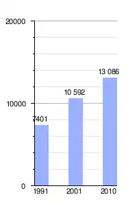 Gráfica de evolución demográfica de Junín de los Andes entre 1991 y 2010 |