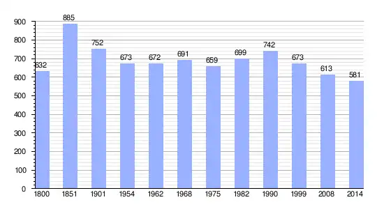 Los datos demográficos contemplados en este gráfico de la comuna de Juvigny-le-Tertre[4] se han cogido de 1800 a 1999 de la página francesa EHESS/Cassini, y los demás datos de la página del INSEE.[5]