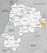 Se encuentra ubicado en el centro del estado, en la región de Karlsruhe, a poca distancia al este del río Rin que lo separa del estado de Renania-Palatinado.