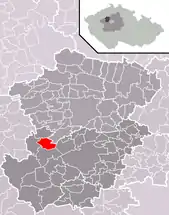 Se encuentra ubicada al noroeste de la región y de Praga, a poca distancia al norte del río Berounka —un afluente izquierdo del río Moldava—, y cerca de la frontera con la región de Ústí nad Labem.[1]