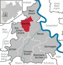 ![]() ![]() Kaarst Ubicación en el estado de Renania del Norte-Westfalia | ||