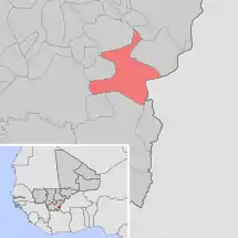 Se encuentra ubicada al suroeste del país, cerca del río Níger, al sureste de la capital nacional, Bamako, y cerca de la frontera con Burkina Faso y Costa de Marfil.