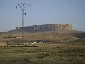 El topónimo Kalaat Senam se debe a la fortaleza cercana (qalat) construida sobre Mesa de Jugurta] (una mesa).