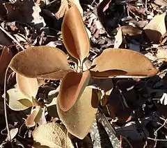Es un arbolito de porte erecto, muy ramificado de hasta 2 m de altura. Los tallos jóvenes son vellosos y cuando maduran se cubren de densas escamas. Hojas verde grisáceas por el haz y verde-plateadas por el envés, de entre 5 a 15 cm por 3,5 a 10 cm, de forma ovada a elíptica o lancelolada, son duras y pilosas con márgenes enteros, ápice agudo y base atenuada. El peciolo es acanalado de unos 15 mm de largo. La inflorescencia surge en densas cimas en forma de corimbo, las flores amarillas son erectas, carnosas sobre pedicelos de 5 a 15 mm. Florece en primavera.