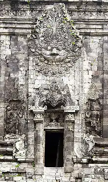 El templo se encuentra en un subsuelo cuadrado de 14.20 metros. El plano tiene forma de cruz y está diseñado como un polígono de doce esquinas. Cada uno de los cuatro puntos cardinales tiene escaleras y puertas decoradas con Kala-Makara y habitaciones de 3.5 metros cuadrados. No se encuentran estatuas en las habitaciones más pequeñas orientadas al norte, al oeste y al sur; pero los pedestales de loto sugieren que las habitaciones alguna vez habían sostenido estatuas de Bodhisattvas. El templo está ricamente decorado con figuras budistas como el Bodhisattva y la gana. La cara del Kala sobre la puerta sur ha sido fotografiada y utilizada por una cantidad de académicos extranjeros en sus libros para dar una idea del arte en piedra de los artistas de Java Central de hace un milenio. Los nichos donde se habrían colocado las estatuas se encuentran dentro y fuera del templo. Los nichos adornaban una pared exterior intrincadamente tallada con Kala, dioses y divinidades en escenas que representan el suargá, el palacio celestial de los dioses, Apsarás y Gandharvas.