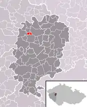 Se encuentra ubicada al noreste de la región, en la cuenca hidrográfica del río Berounka —un afluente izquierdo del río Moldava que, a su vez, lo es del Elba—, y cerca de la frontera con la región de Bohemia Central.[1]