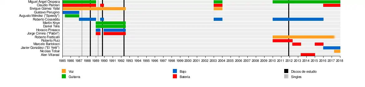 Roberto Cosseddu Enrique Gómez Yafal Alen Villareal Gustavo Perugino Augusto "Speedy" Méndez Martin Knye Daniel Telis † Horacio Pinasco Jorge "Patón" Cimino Roberto Ruiz Marcelo Bartolozzi Roberto Fratticelli | ||