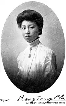 No hay indicios de que el matrimonio fuera organizado por sus respectivas familias, como solía ser el caso entre los chinos de clase alta en ese momento. Tongbi acompañó a su esposo cuando este último fue asignado al consulado chino en Dinamarca, y luego se mudó a los Estados Unidos, donde ya residía su padre.[5]