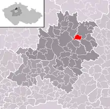 Se encuentra ubicada al norte de la región y de Praga, cerca de la confluencia de los ríos Elba y Moldava, y de la frontera con la región de Ústí nad Labem.[1]