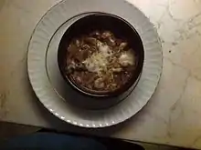 El plato es parecido a gambas al ajillo, pero de extra tiene cebolla picada, tomates, champiñones y bastante queso rallado para derretir. Los otros ingredientes son "salça" (una pasta de tomate especial de Turquía), mantequilla, pimentón rojo y pimiento verde, ajo y algún tipo de chile picante picado o molido.