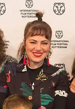 El director, Gustavo Pizzi, junto a parte del reparto de su película Siempre juntos: Karine Teles y sus hijos mellizos, en el Festival Internacional de Cine de Róterdam de 2018.