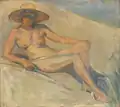 - Karl Schou - Nøgen kvinde med hat liggende i klitterne - 1914