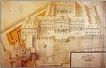 Sus sucesores ampliaron el palacio hasta que las tropas francesas lo incendiaron en agosto de 1689. En el invierno de 1698/1699, al regresar del exilio desde Basilea, el margrave Federico VII Magno comenzó a reconstruirlo. Planeado de gran tamaño y en un momento de absoluta pobreza y destrucción, originó un enfrentamiento con los ciudadanos de Durlach, agravado con las nuevas cargas de guerra como consecuencias de la Guerra de Sucesión española (1701-1714). [3]