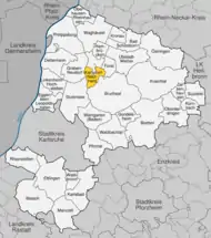 Se encuentra ubicado en el centro del estado, en la región de Karlsruhe, a poca distancia al este del río Rin que lo separa del estado de Renania-Palatinado.